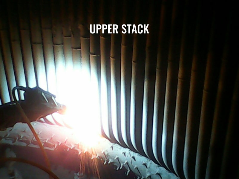 There is metal wastage on the inside area of the stack (tube surface) due to continuous heat, humidity, atmospheric moisture, thermal shock, presence of sulphur & the dust particle movement.
